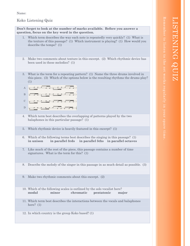 Koko Listening Quiz For Edexcel Gcse Music With Excerpts And Answers Teaching Resources